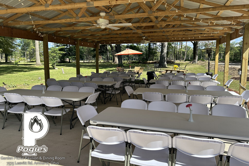Our Garden Picnic Pavilion is perfect for medium and large events. Our spacious back yard offers plenty of room for cornhole and a bonfire.